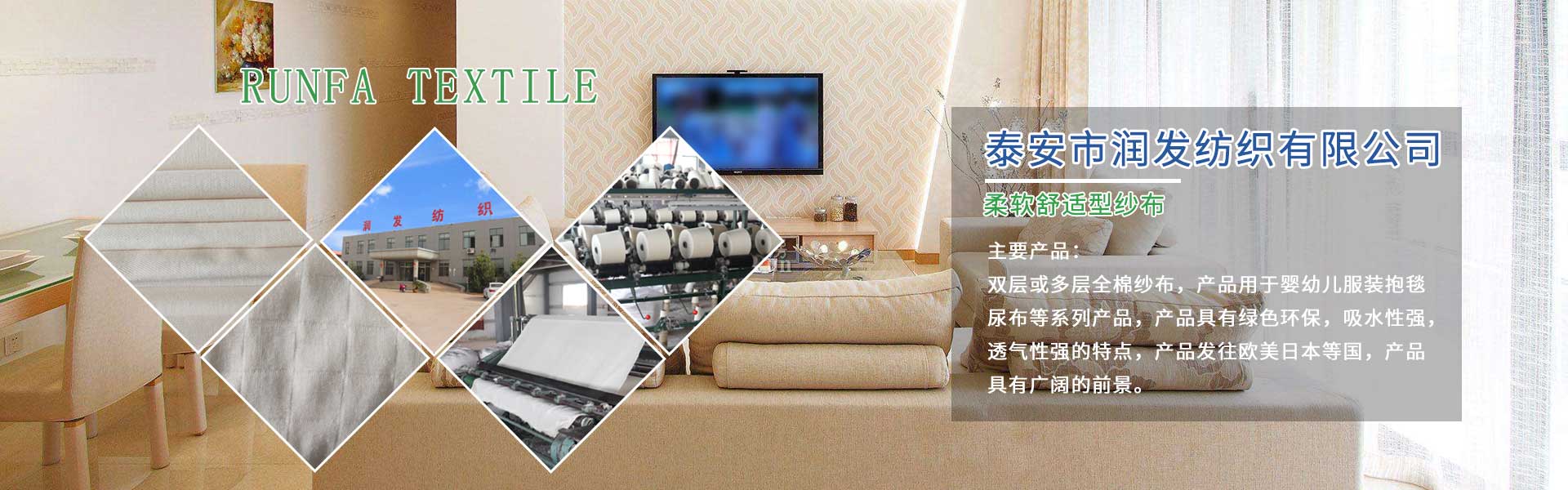 泰安市潤發紡織有限公司是一家規上民營紡織企業,主要產品:雙層或多層全棉紗布,產品用于嬰幼兒服裝抱毯尿布等系列產品,產品具有吸水性強,透氣性強的特點,產品發往歐美日本等國,產品具有廣闊的前景。